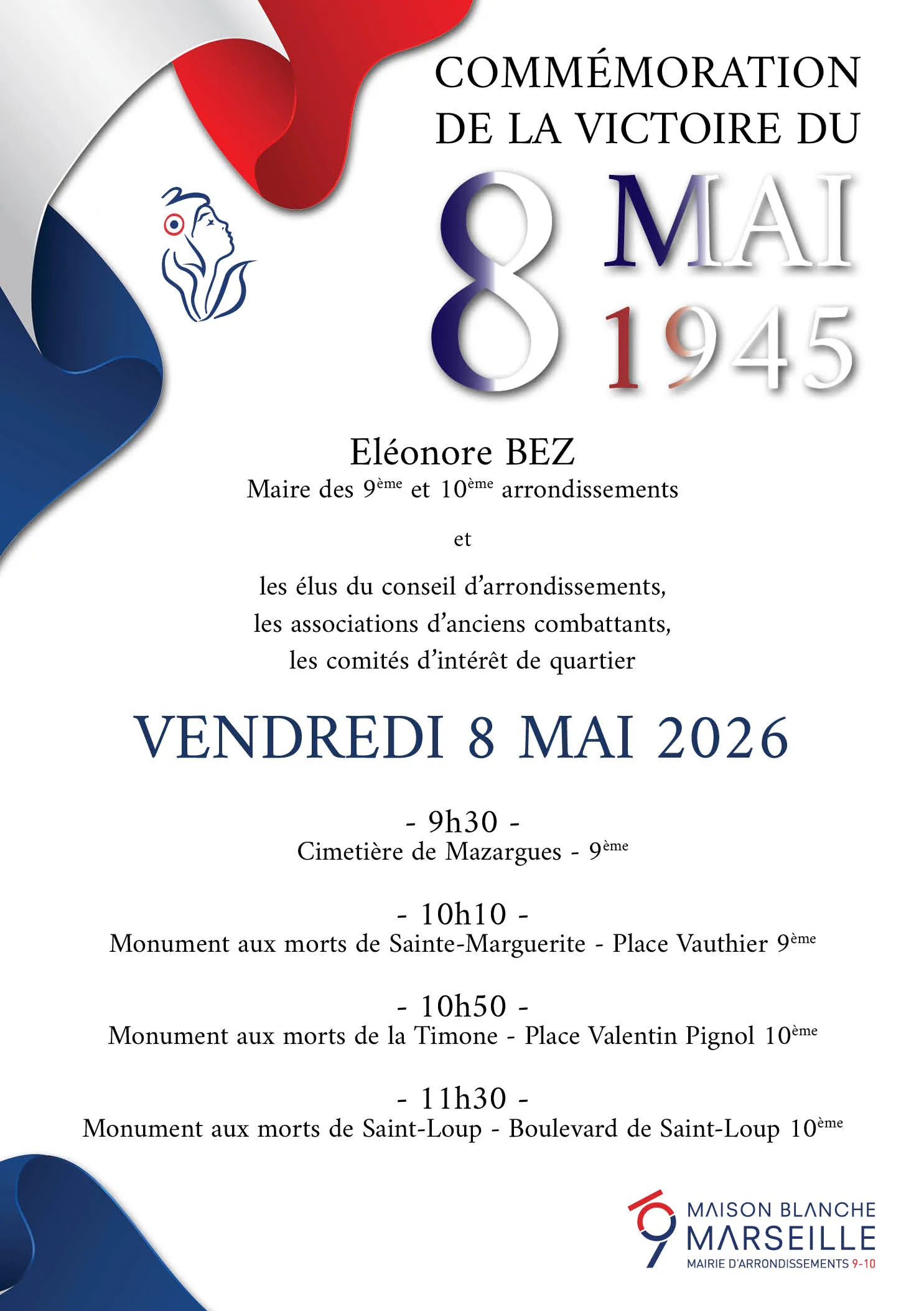 Submitted by gestionnaire@m… on lun 27/04/2026 - 15:50 COMMEMORATION DE LA VICTOIRE DU 08 MAI 1945 Rendez-vous Vendredi 8 mai 202609:30 - 12:00 Vignette