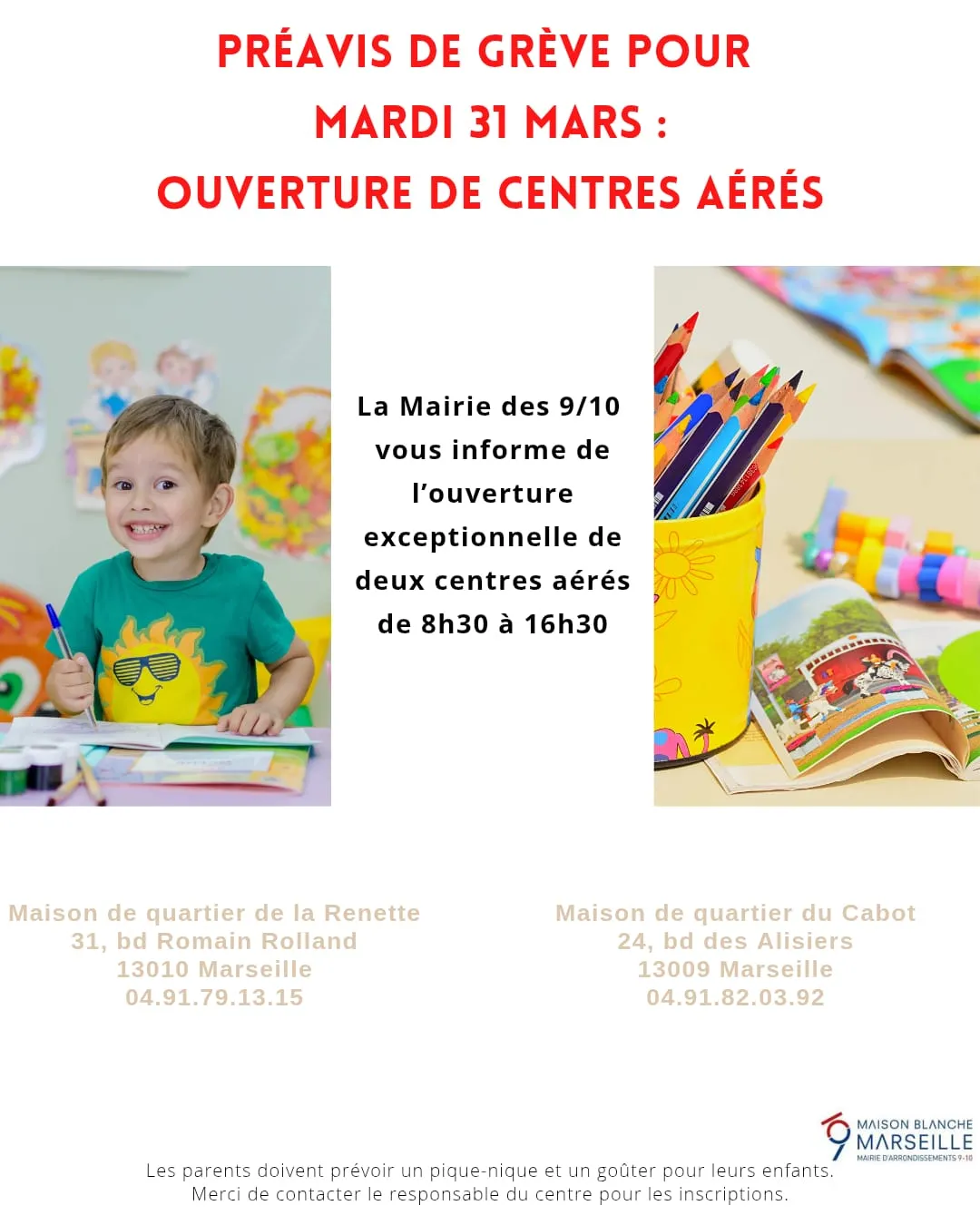 Submitted by gestionnaire@m… on lun 30/03/2026 - 13:04 Ouverture de centres aérés suite à des grèves dans les écoles Rendez-vous Lundi 30 mars 2026 - 13:07Mercredi 1 avril 2026 - 00:06 Vignette