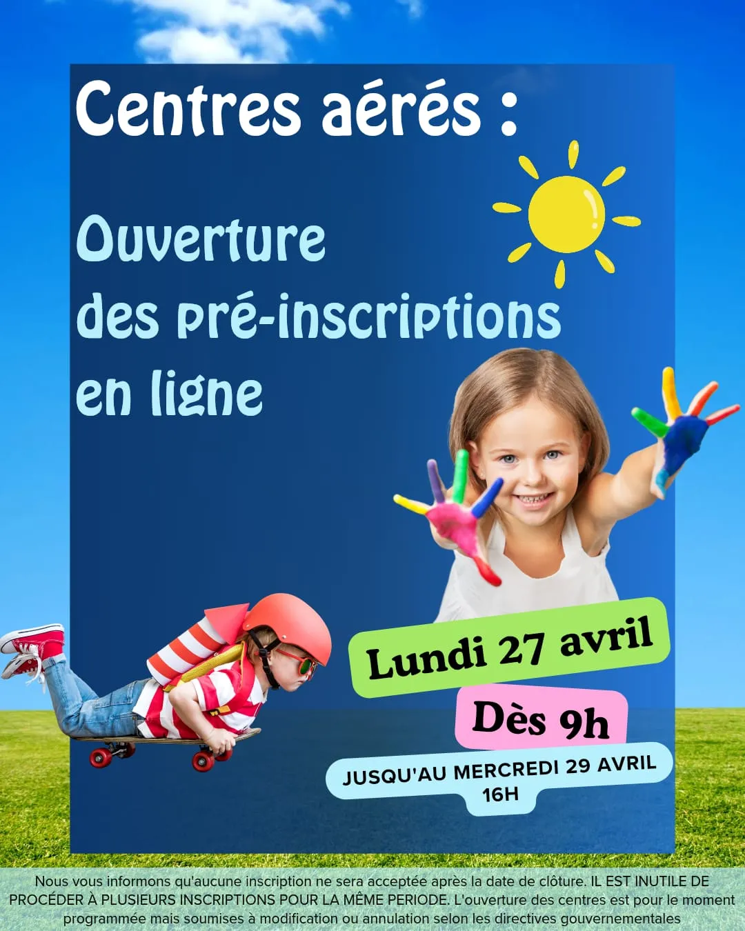 OUVERTURE DES PRE-INSCRIPTIONS EN LIGNE POUR LES CENTRES AERES POUR LES VACANCES D'ETE