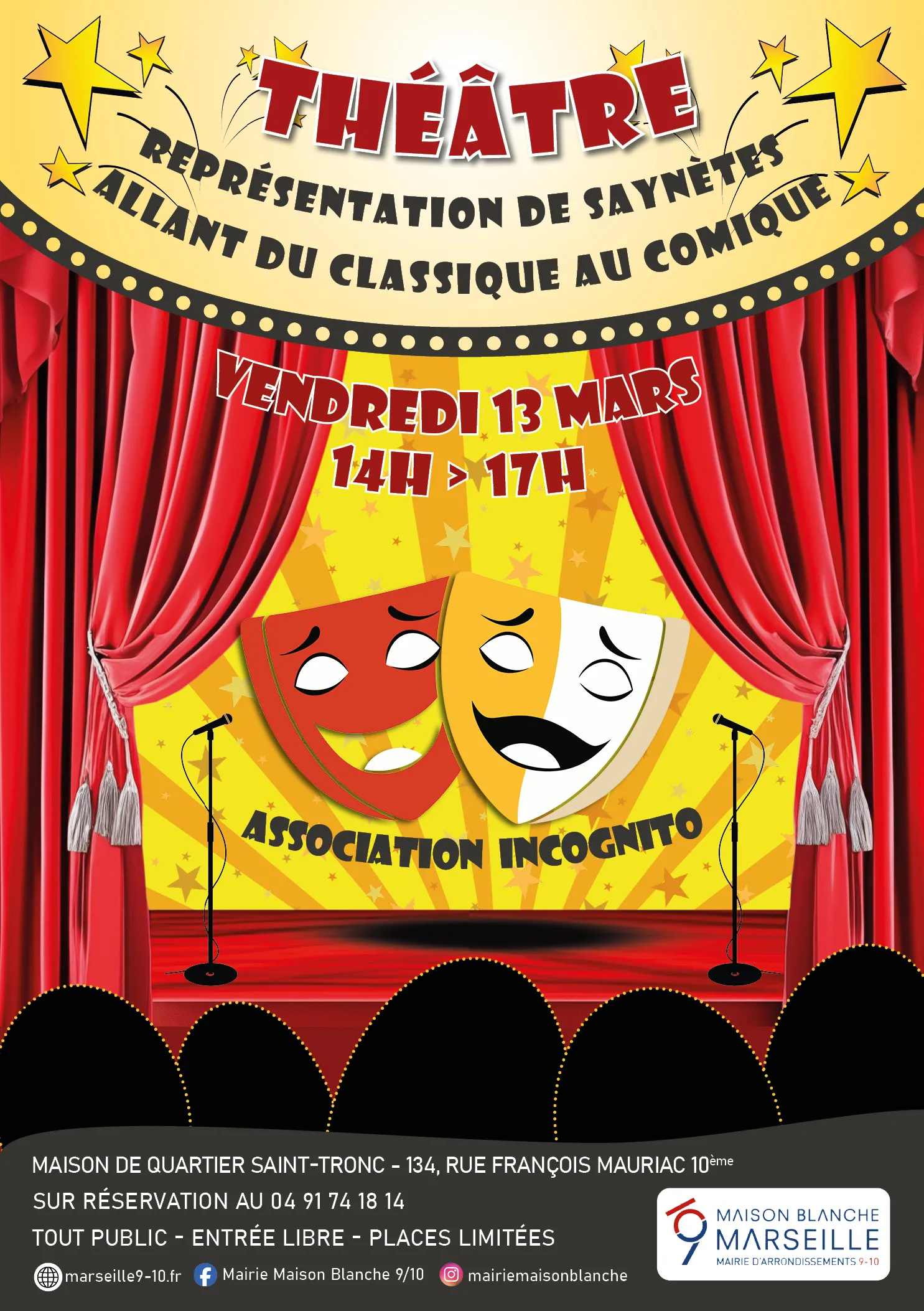 Submitted by gestionnaire@m… on ven 06/02/2026 - 10:23 THEATRE A SAINT-TRONC Rendez-vous Vendredi 13 mars 202614:00 - 17:00 Description Vignette