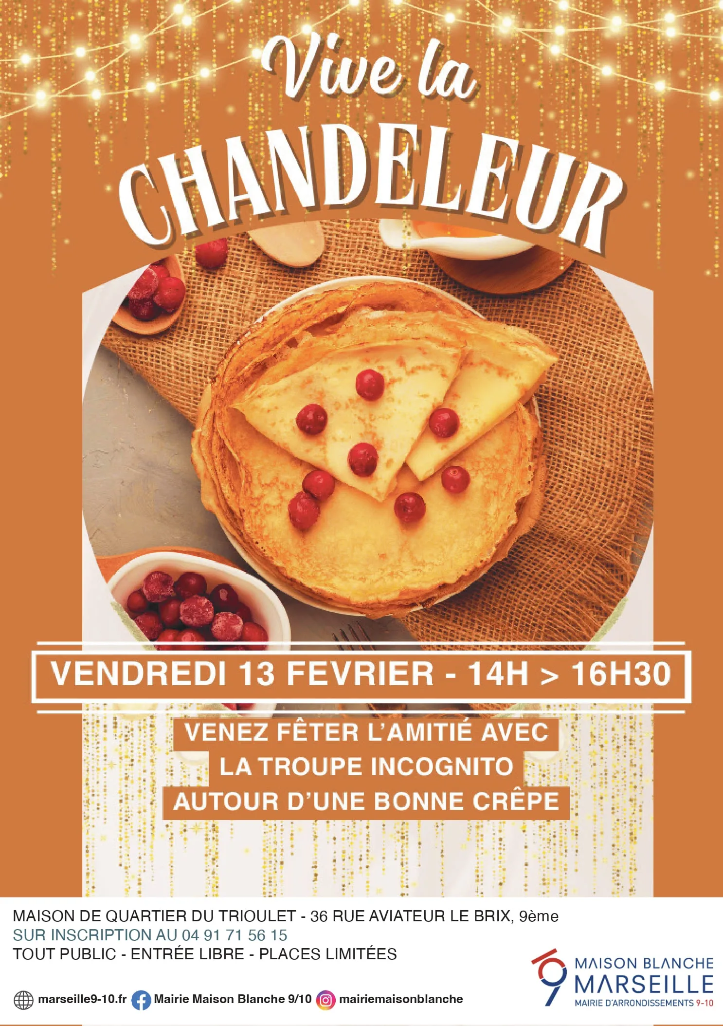Submitted by gestionnaire@m… on ven 12/12/2025 - 13:49 VIVE LA CHANDELEUR Rendez-vous Vendredi 13 février 202614:00 - 16:30 Vignette